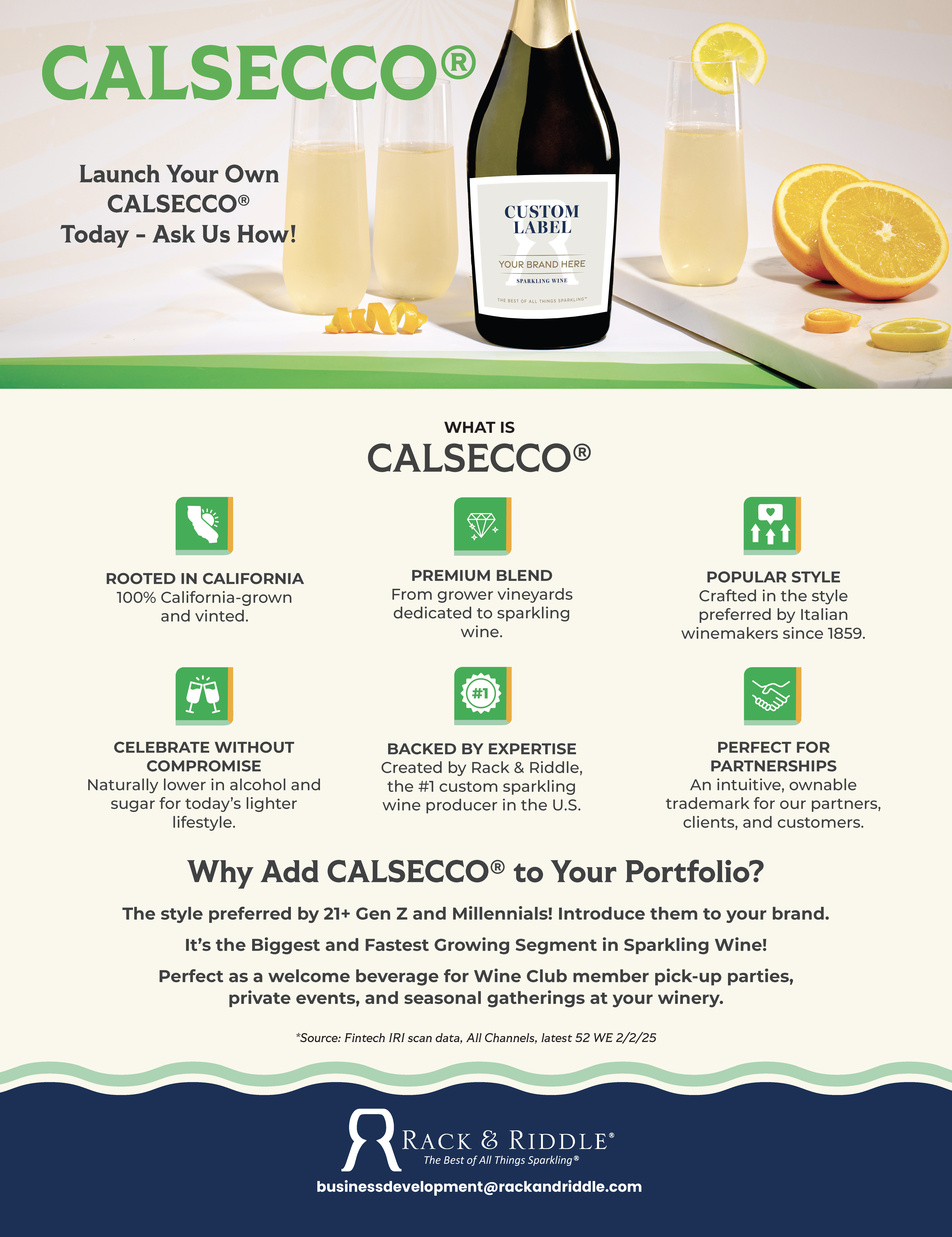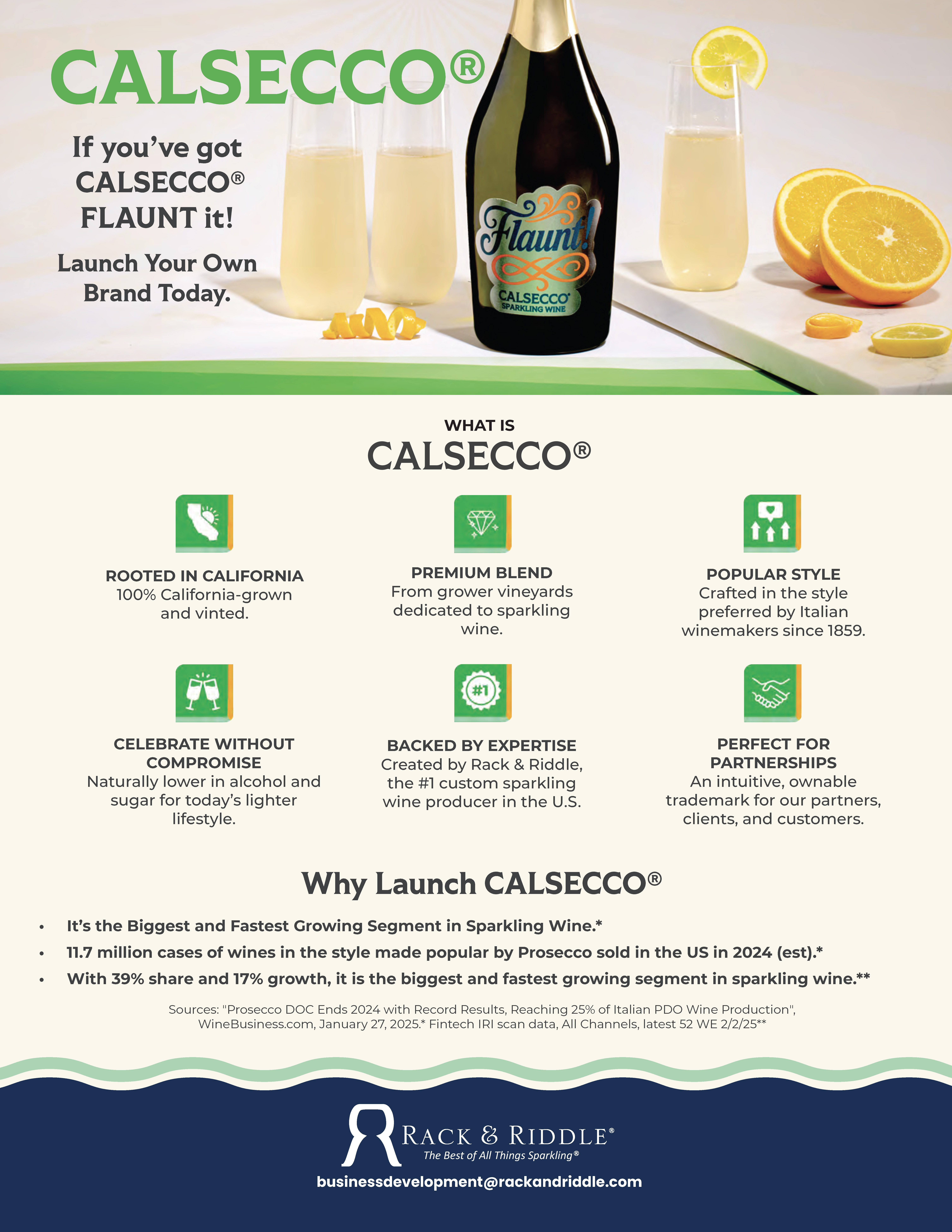 A Brand New Sparkling Wine CategoryMade for the next generation of wine lovers — 21+ Gen Z and MillennialsSonoma County, CA — Rack & Riddle, the #1 custom sparkling wine producer in the United States, has created CALSECCO® a new California sparkling wine category...